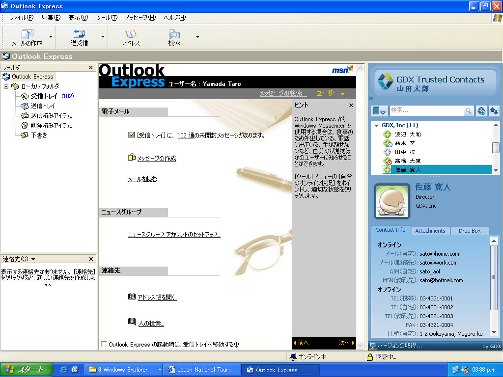 We were the first company developing a side panel also known as side bar. We have done this side bar for both Outlook and Outlook Express (using our OEAPI for this platform). Please see the screenshoot of this plugin that supports Outlook Express and Outlook.